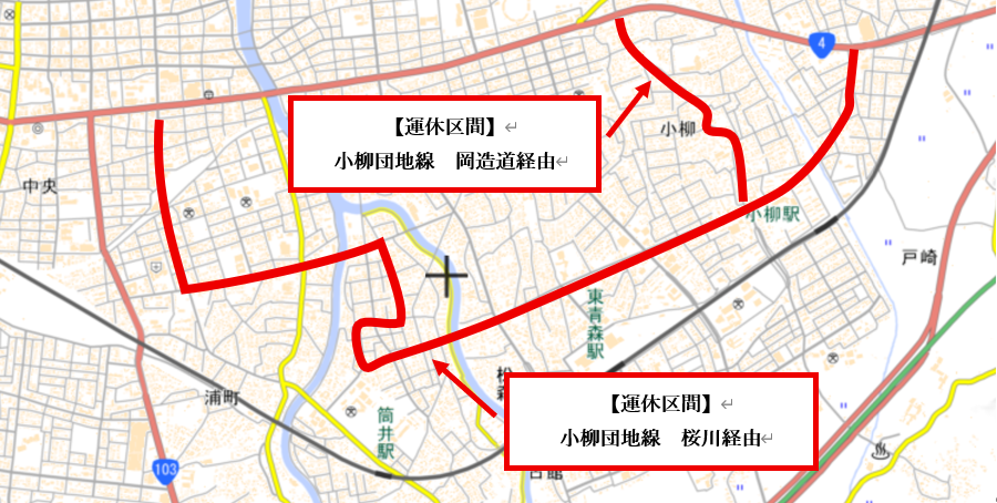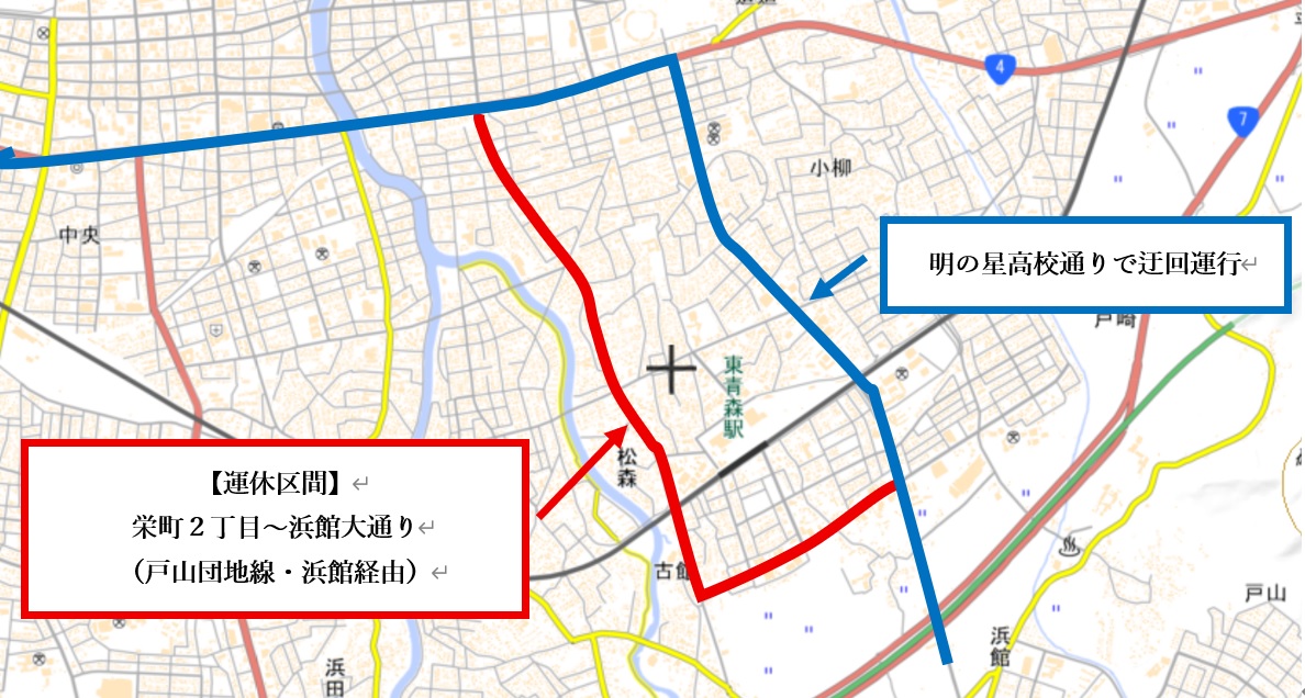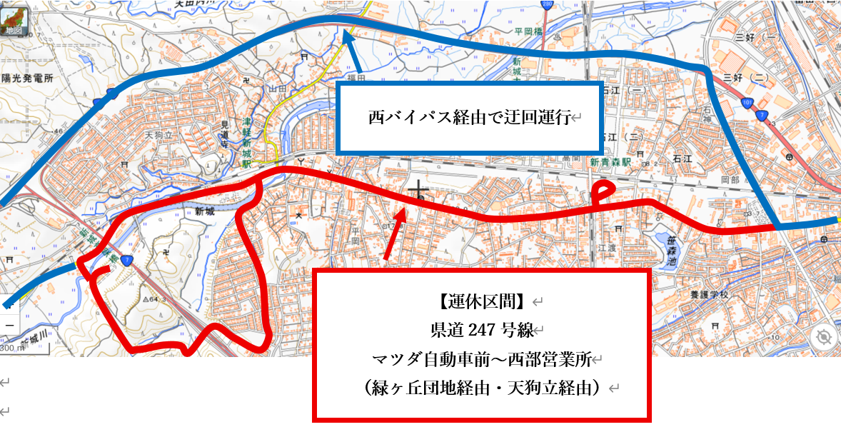 (国道259号線(久栗坂造道線)又は国道4号線(東バイパス)で迂回運行)