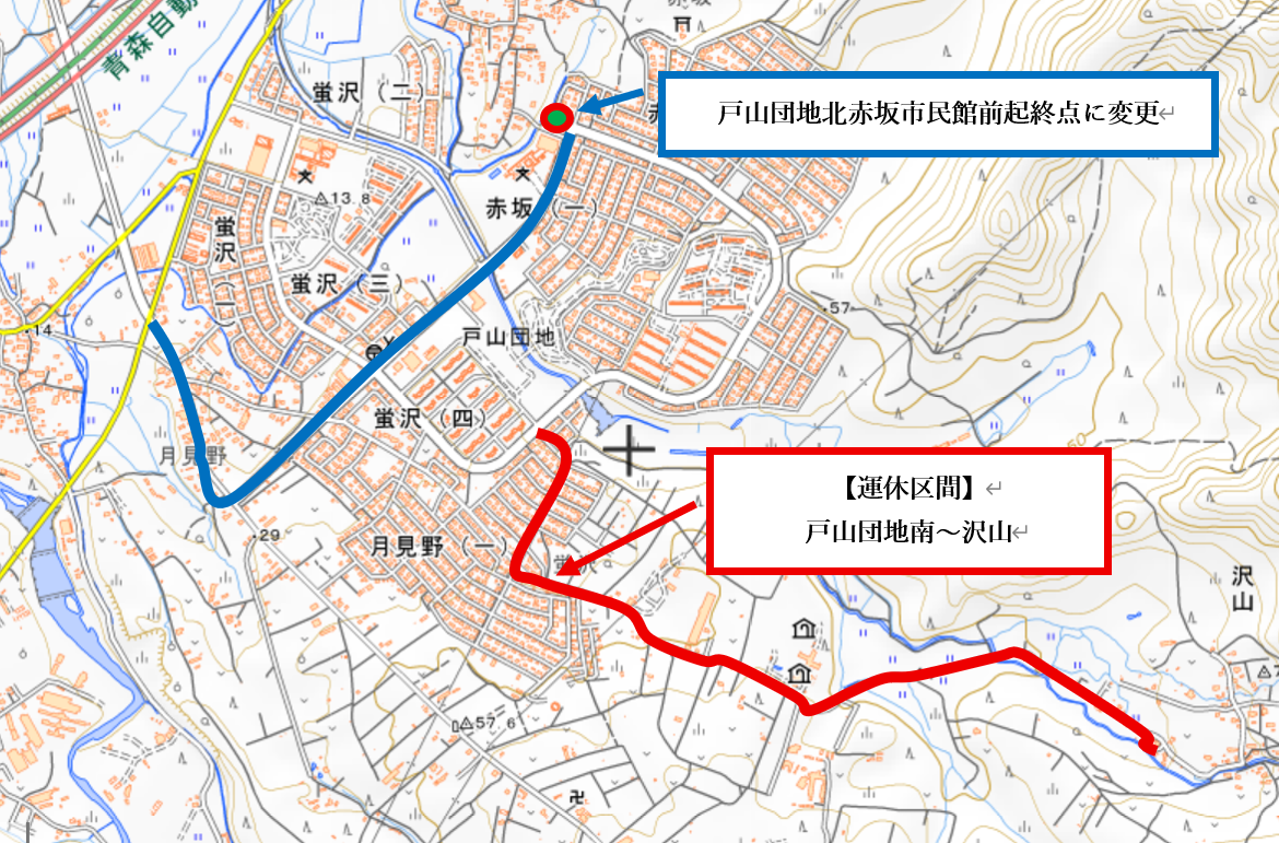 (戸山団地北赤坂市民館前を起終点に変更して運行)