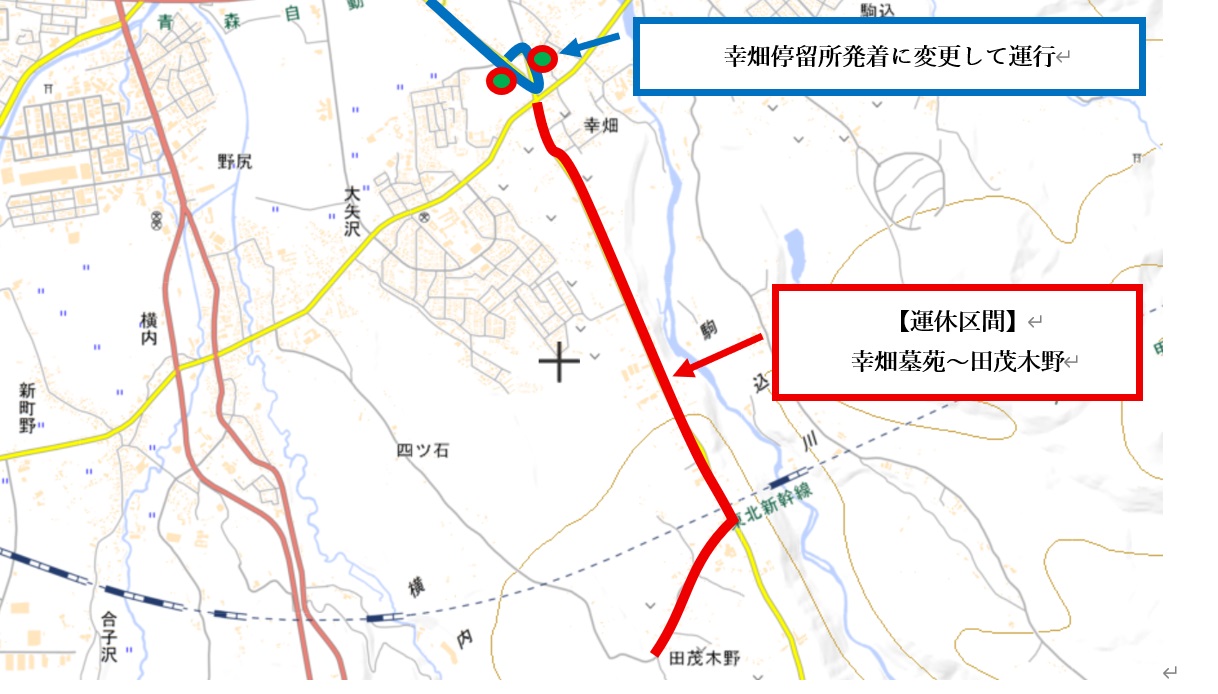 (幸畑停留所を起終点に変更して運行)