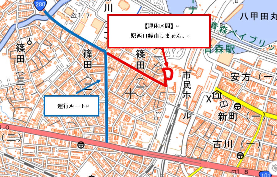 (シーナシーナ青森前を起終点に変更して運行)